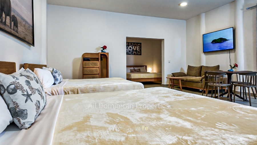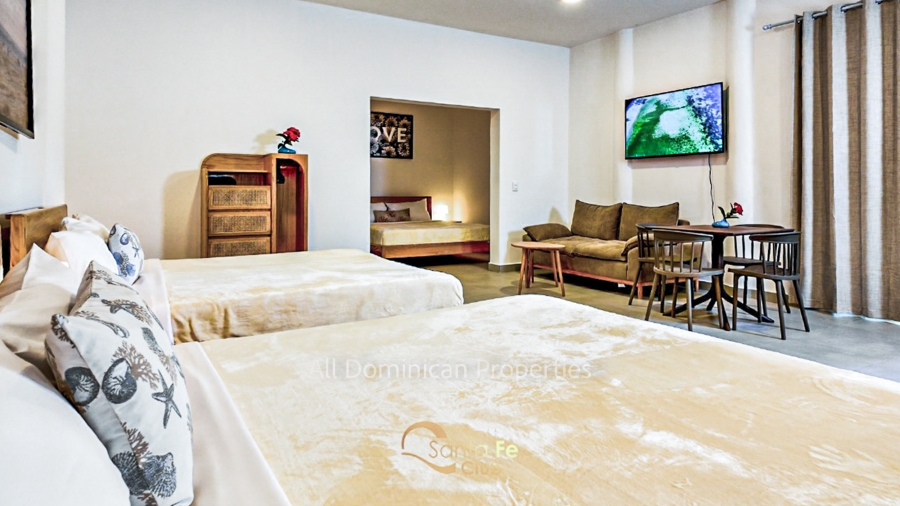 Stay in elegant rooms with 3 king-size beds, a large shower, free Wi-Fi, big-screen TV, sofa, and dining area — perfect for families just steps from Laguna SOV Water Park.