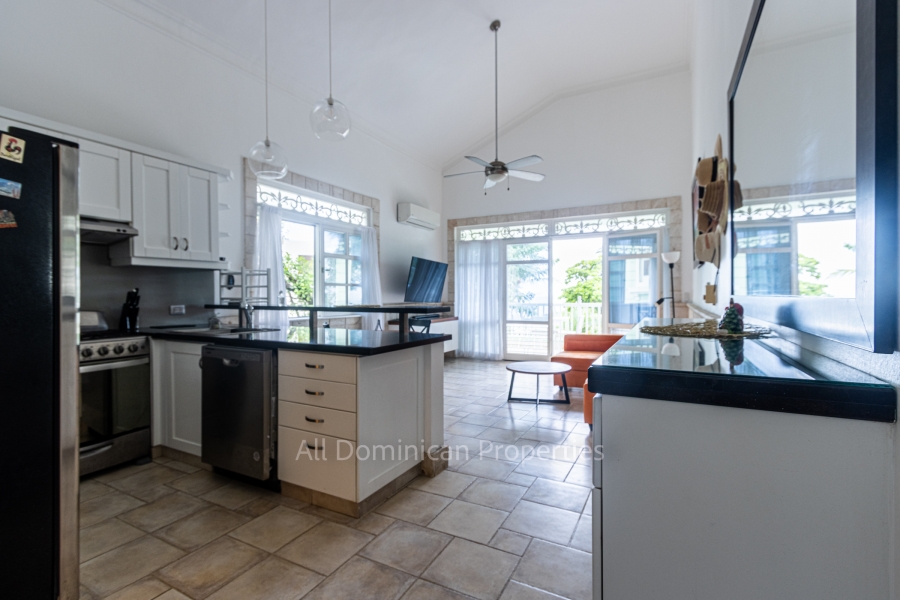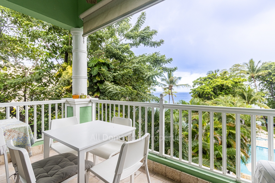 Living area of 115 square meters: hall - kitchen, terrace with ocean view, 2 bedrooms 1 or 2 bathrooms. View of the pool and the ocean.