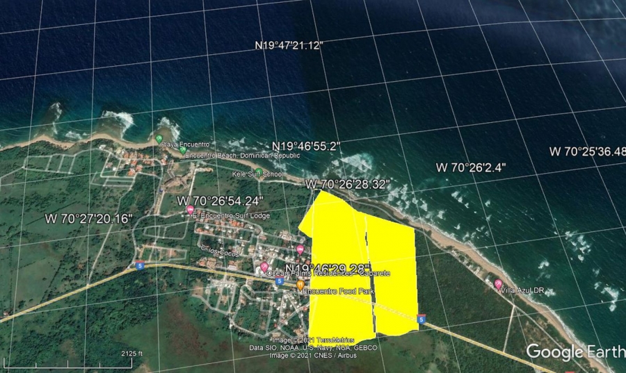 More than 300 linear meters of ocean frontage. 20 minutes from Puerto Plata International Airport. The average price for the entire finca is $100 per m². It is possible to sell half of the plot, facing north/south. It is important to note that since the title deed dates back to December 31, 1969, the northern boundary of the plot is the Atlantic Ocean.